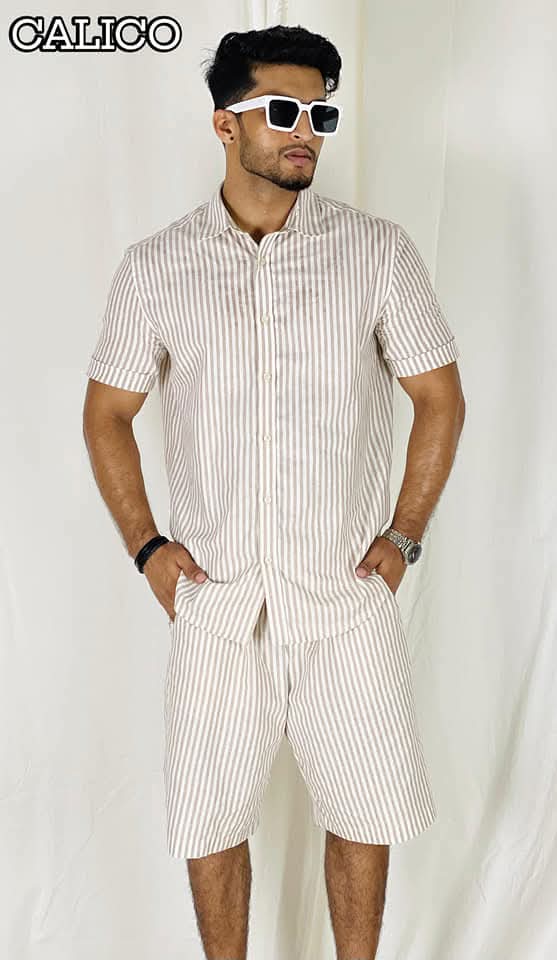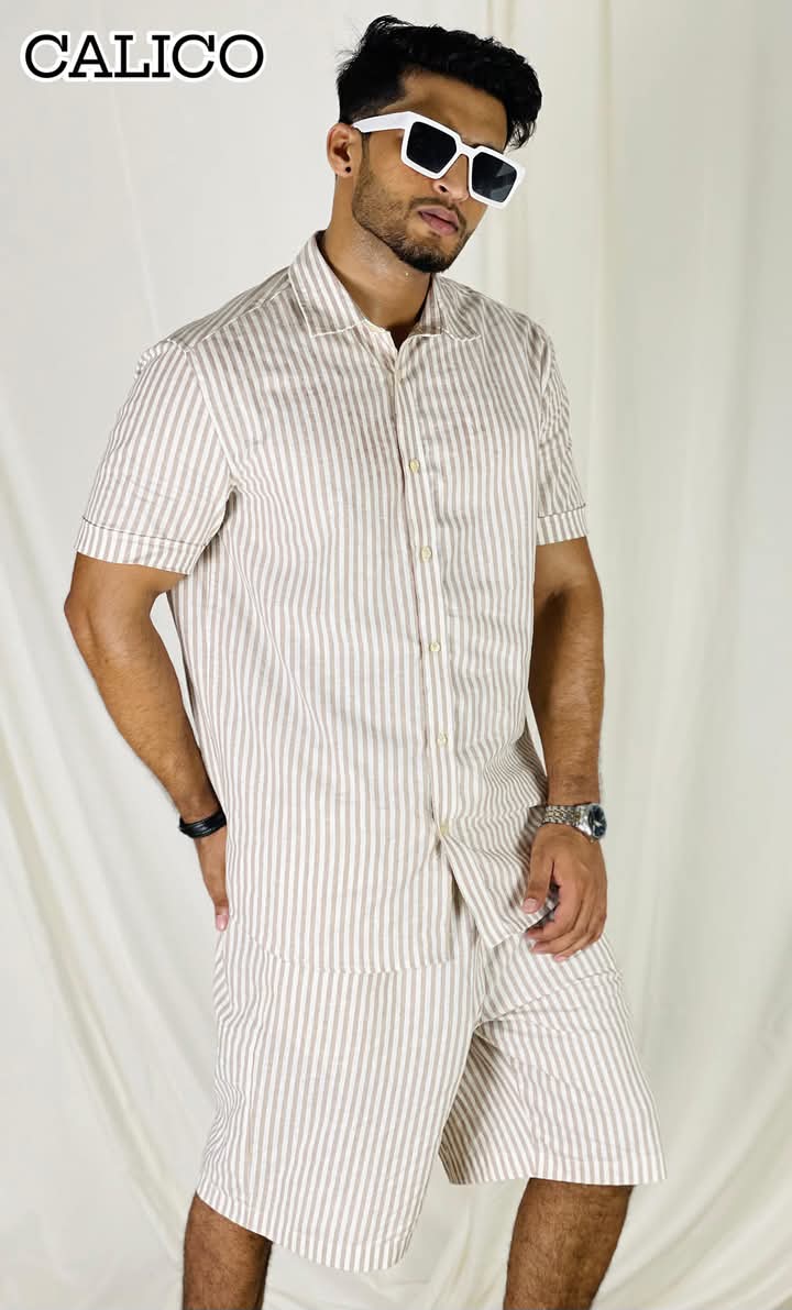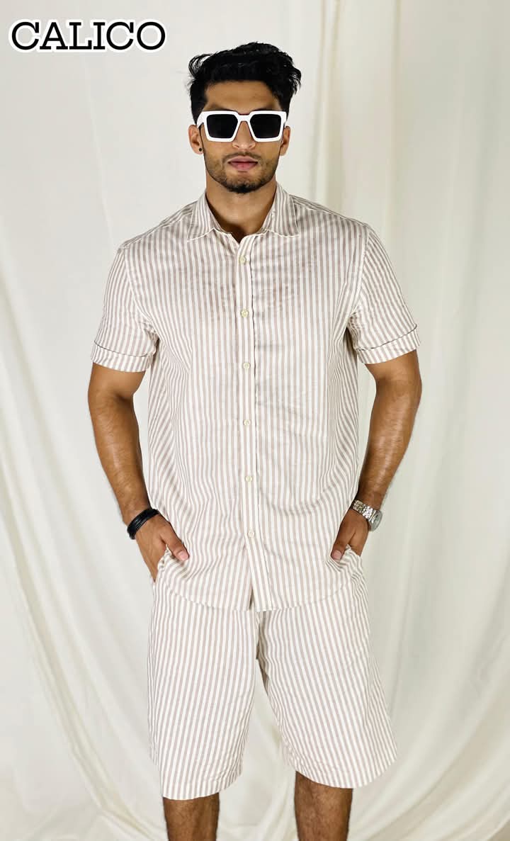 • Brown stripe 100% cotton fabric Co-Ord set for Men